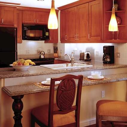 As a guest of the Hilton Grand Vacations Club at the Kalia Tower, you'll enjoy the beautifully appointed accommodations throughout floors 12 - 18. Our One-Bedroom Mountain View suite with double beds and is filled with all the comfortable features of home and a spacious lanai. The fully equipped kitchen includes a refrigerator, microwave, dishwasher oven/stove - plus utensils. A dining area off the kitchen can easily double as workspace. A separate living area features a full-size sleeper sofa, a comfortable chair and 32" television with remote control, premium cable with DVD player. When you're ready for bed, sink into our comfortable double-sized bed in a separate bedroom with 24" remote control television. Like all of our suites, our One-Bedroom Suite keeps you connected with high-speed Internet access and helps you stay on schedule with a custom-designed alarm clock featuring MP3 player capabilities and pre-set local radio stations.