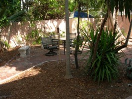 You are welcome to use the walled in "secret garden." Relax, surrounded by lush, tropical plants, hear the bubbling of the fountain and enjoy an evening of grilling with the gas barbecue grill.