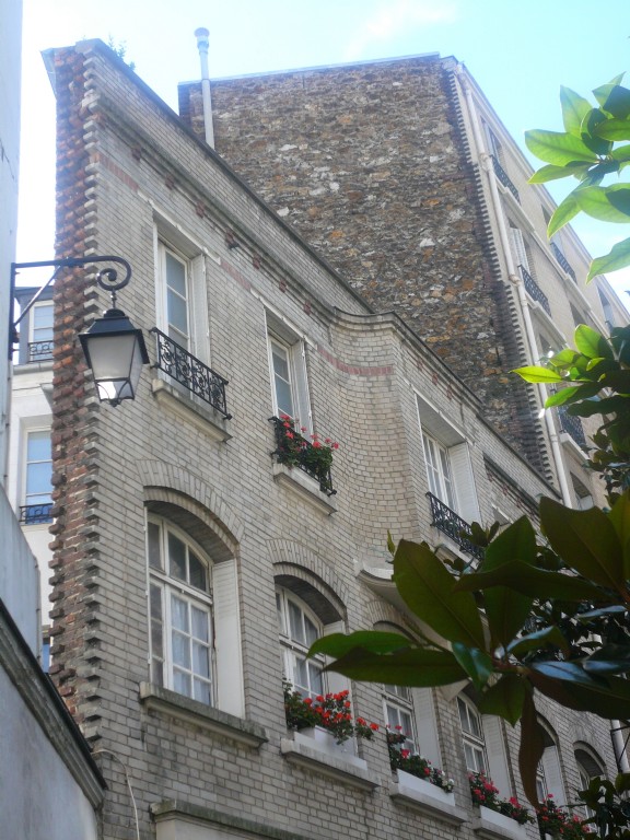 in the courtyard of a 1930's building, on the first floor (one floor up)