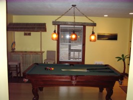 The fun really starts when you step down into our Island Lounge. Mix a drink at the tiki bar, play a friendly game of pool or watch some satellite TV while doing both.