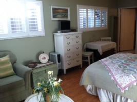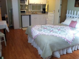 Darling furnished cottage studio apartment, on the sand with a private entrance, queen bed, sitting area with DVD for movies, kitchenette with toaster oven, coffee pot, microwave and a mini refrigerator, full bath, bistro table for two, internet.