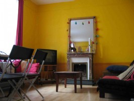 • a living room of 20 squared meters (215 ft2) with a futon-sofa for 2 people,