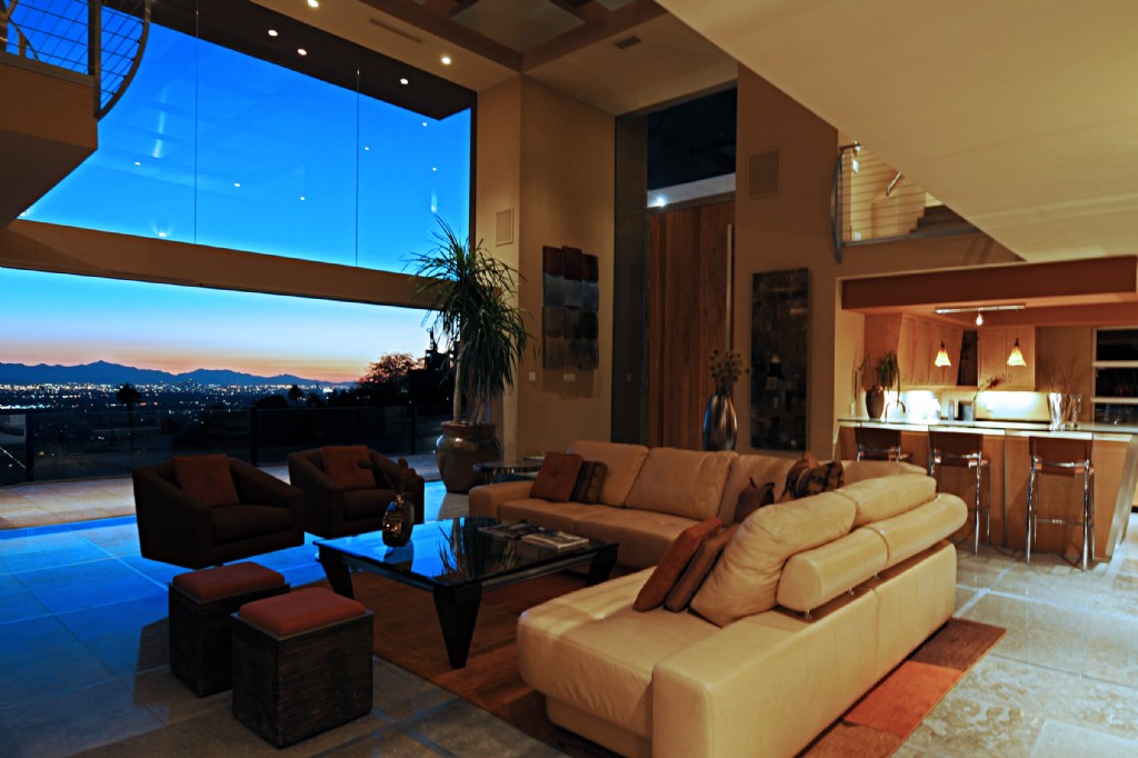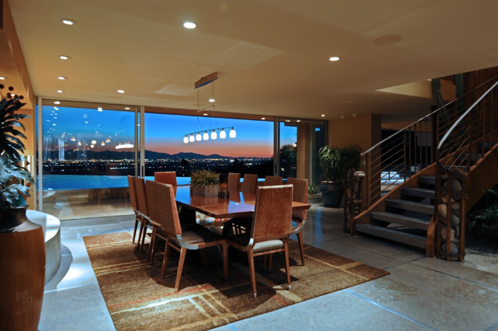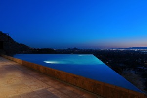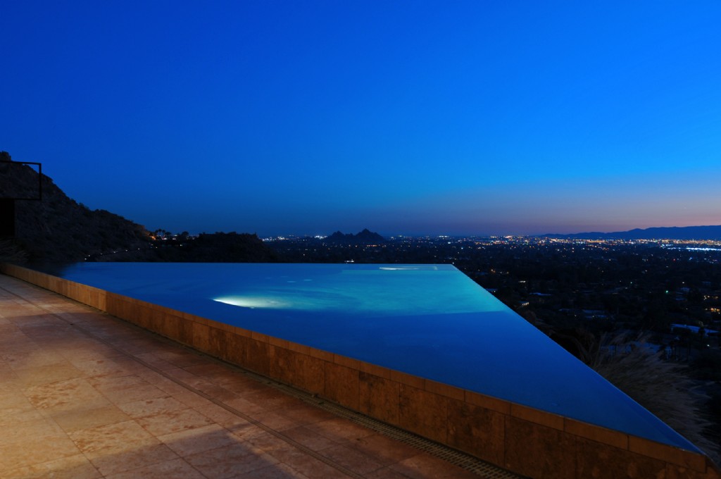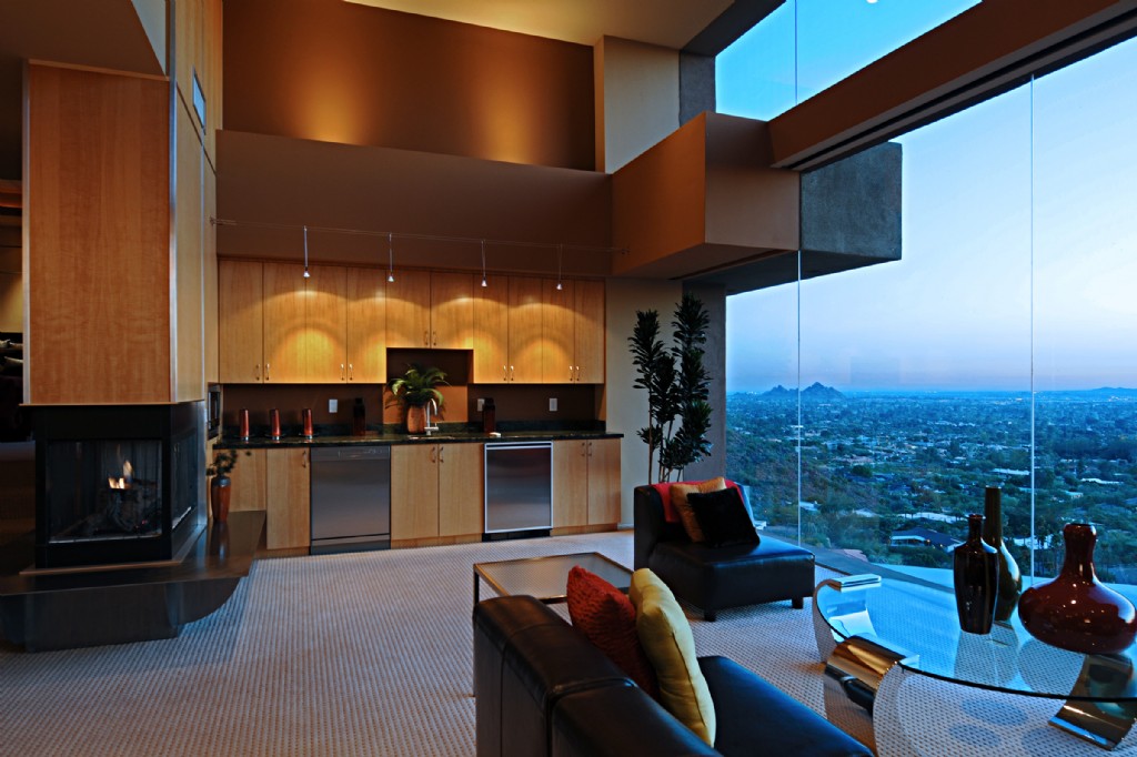 A spectacular negative edge pool with a concealed Jacuzzi juts into the skies over Phoenix. A thirty-foot cascade provides a backdrop to the outdoor kitchen and barbecue area. Private chefs are available, as are concierge and maid services.