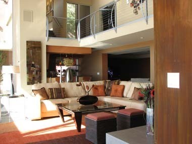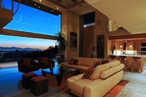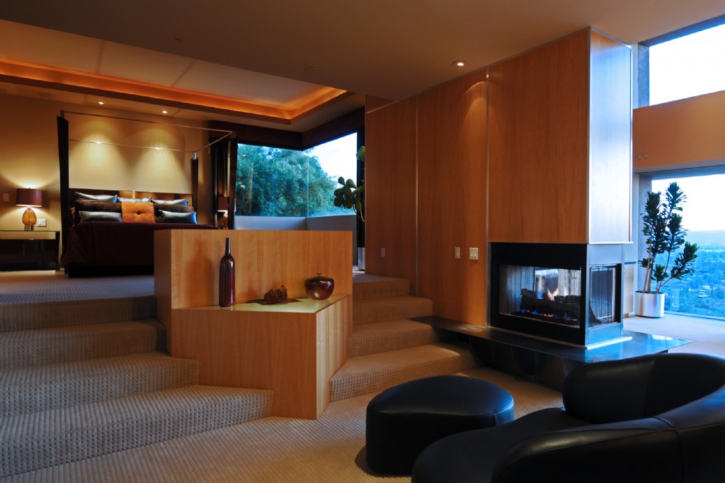 The Master suite commands an amazing view of both the interior of the home, an overhead view of the negative edge pool, and the Valley below.