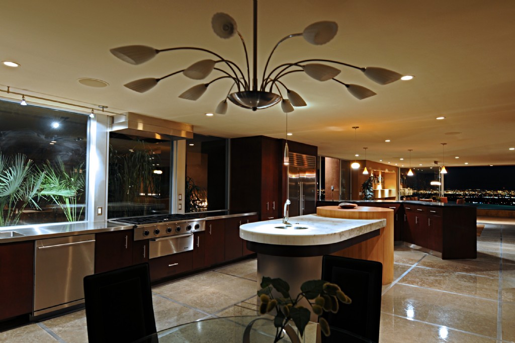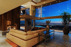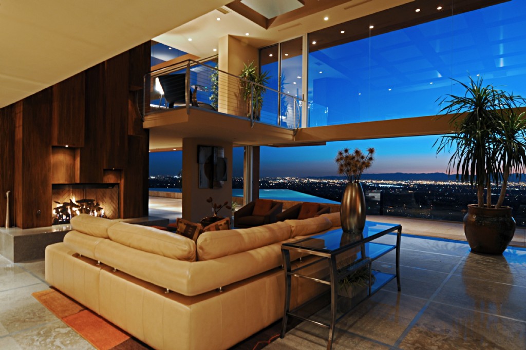 The twelve foot tall two thousand pound African Sapele wood front door pushes open to reveal a living room of grand scale. Endless views of the city below are sure to inspire.