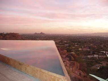 SLEEPS 12, 10,000 sqft. Situated high on Camelback Mountain, the estate sits in the shadow of massive red sandstone cliffs, and from its aerie an amazing view of the Valley of the Sun and its endless vistas.