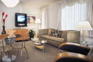 The Art Deco inspired 1-bedroom Suite offers 1 queen bed and a full sofa sleeper while the 2-bedroom Suite has 1 king bed, 1 queen bed, and a full sofa sleeper. In each Suite, enjoy the convenience of a well-equipped kitchen that includes a refrigerator, stove, microwave, dishwasher, coffee maker, toaster, and utensils. Inside the refrigerator you'll find various mini-bar items that are refreshed daily (charges apply). The 1-bedroom Suite bathroom has a shower/tub combo and the 2-bedroom Suite has 2 bathrooms both with shower/tub combos. Flat-screen TVs, a DVD player and high-speed wireless Internet are available in all Suites. The two-bedroom suite offers 1 king bed, 1 queen bed, and a full sofa sleeper.