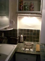 - microwave, french press, toaster, electric kettle