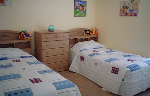 Ground Floor Master bedroom with en-suite tub. 4 Upstairs Bedrooms - 2 Boubles and 2 Twins. 2 Full Bathrooms upstairs and WC downstairs plus outside pool bathroom. Family Room (Lounge) has cable tv with over 100 channels + HBO Movies.