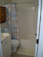 The guest bedroom contains a full size bed with brand new mattress, soft sheets, comforter, and pillows. The guest closet also has been redesigned to maximize storage space. The guest bathroom has solid surface sinks and a bathtub with shower.