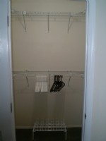 The master bedroom has a comfortable queen size bed with soft sheets, comforter, and pillows. There is a full size dresser with night stand and plenty of room to spare. The master bathroom has a solid surface sink and a shower big enough for two. The closet has been redesigned to maximize storage. The master bedroom is carpeted.
