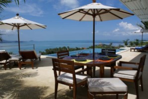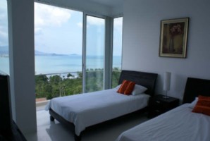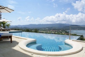 Stylish contemporary 2 story villa with breathtaking views over Big Buddha bay and the neighboring islands. Private 10x5m infinity pool + Jacuzzi, 70 m2 pool terrace with spectacular sunsets. 80 m2 roof, in-out door dining for 8, fully fitted kitchen