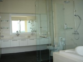 All 3 bedrooms on the 2nd floor have TV, DVD player and sliding glass doors on to a balcony with ocean views. Two of the bedrooms have king size beds and the third having twin beds. The master bedroom has a large en-suite bathroom with Jacuzzi bath and separate rain shower positioned so that you can bathe whist taking in the ocean views. The other 2 bedrooms share a bathroom with a large shower. A 4th double bedroom with en-suite bathroom is located on the floor below the living room (access from the steps next to the car park). The laundry room with washing machine is also located on this level.