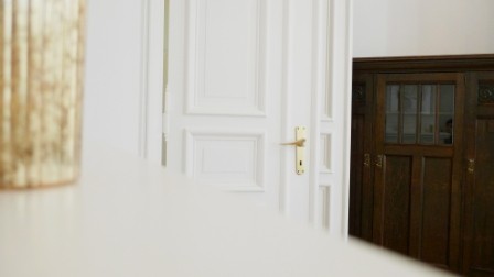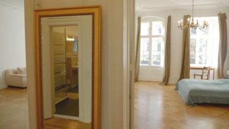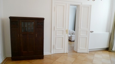 11.5ft (3.50m) high ceilings with wonderful stucco in all rooms, unique antique wooden floors, beautiful wooden doors and two amazing decorational ovens give the sunny apartment a flair of a little town palace.