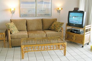 Our condo, on the top floor, commands a spectacular ocean and coastline view for wonderful Hawaii vacations. The vacation rentals condo contains 2 separate accommodations which can be rented together or separately. The "A" unit has a full kitchen, living room, master bedroom and bath with its own private view lanai. There are floor to ceiling soji screens which in the extended position can be used for privacy purposes to separate the master bedroom and the living room. The "B" unit is a small, cozy stand-alone private "hotel unit" with it’s own entrance, bathroom, bar-size refrigerator, microwave, coffee maker, private telephone, small table and 2 chairs, cable TV and lovely ocean view, not a walk-out balcony. There is total privacy between these separate units with individual private entrances.