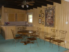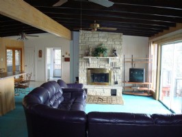 This is a large, beautiful home with pine wood walls and exposed beems in the ceilings. Upstairs you will find an oversized bath with a Jacuzzi tub, and two very large rooms with two queen beds, a trundle bed and a single bed. Each bedroom has oversized sliding glass doors leading to the upstairs porch and a fabulous view of the lake.