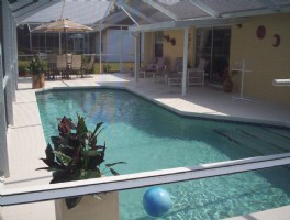 Upon entering this home you will notice the large lot compared to newer homes. As the door opens you will see the remodeled modern decor with the view of the large deck overlooking the pool and the cool tile that covers the Living area. The Master bedroom has a large queen with also a pull out sofa along with two vanities. The Childrens room is equipped with games, movies and toys and the Third bedroom is the relaxing and quiet room where you can enjoy a good book or nap. The kitchen is just what the chef ordered. Completely equipped with ALL amenities. This home is a reason to go on vacation and the magical experience begins here!