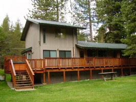 Luxury clean 4 drm, 3 ba (2 with steam units) HOT TUB house located on 2 private landscaped acres on the Upper Truckee River in So. Lake Tahoe at the foot of Echo Summit. Includes all linens & towels.