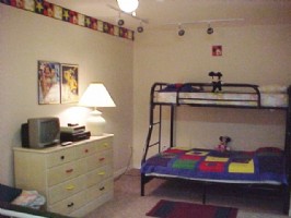 *(Kids will enjoy their stay in the KIDS’ APARTMENT, with their very own bedrooms and game room, play and TV area, VCR, DVD, Disney Videos, toys, and more!)
