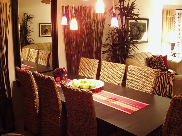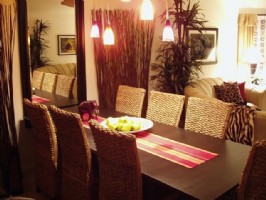 •Breathtaking 10-foot "Animal Kingdom" dining room table with deco lights, 7’ wall mirror, rattan chairs, etc., that will absolutely “awe” you