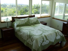 Both suites offer sparkling golden sunrises every morning. You will see gold "dust" on the ocean water rippling down to Hilo Bay in the winter and dancing up the Hamakua Coast in the summer; a visual sparkling delight every morning while you enjoy a complimentary breakfast of organic fresh, no hormone, no antibiotic "cruelty free" eggs from Oreo's farm free range hens and organic spelt pancakes with mango sauce along with organic coffee.