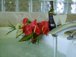 The Grand Oma Suite has a queen bed, a twin futon bed, a 6 jets whirlpool tub and and a 6 multi-heads shower.