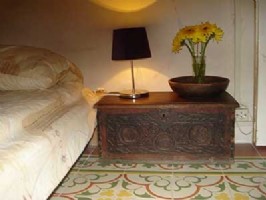 When you enter the apartment, you find a big living room with a big comfortable couch on your left, with double doors opening on a small balcony. The balcony is connected to the dining area and the open kitchen. Next are the three bedrooms: two master bedrooms and a smaller one, all equipped with double beds and ceiling fans. On the other side of the apartment, you find the gallery with the toilets on the left, and the bathroom with a shower on the right.