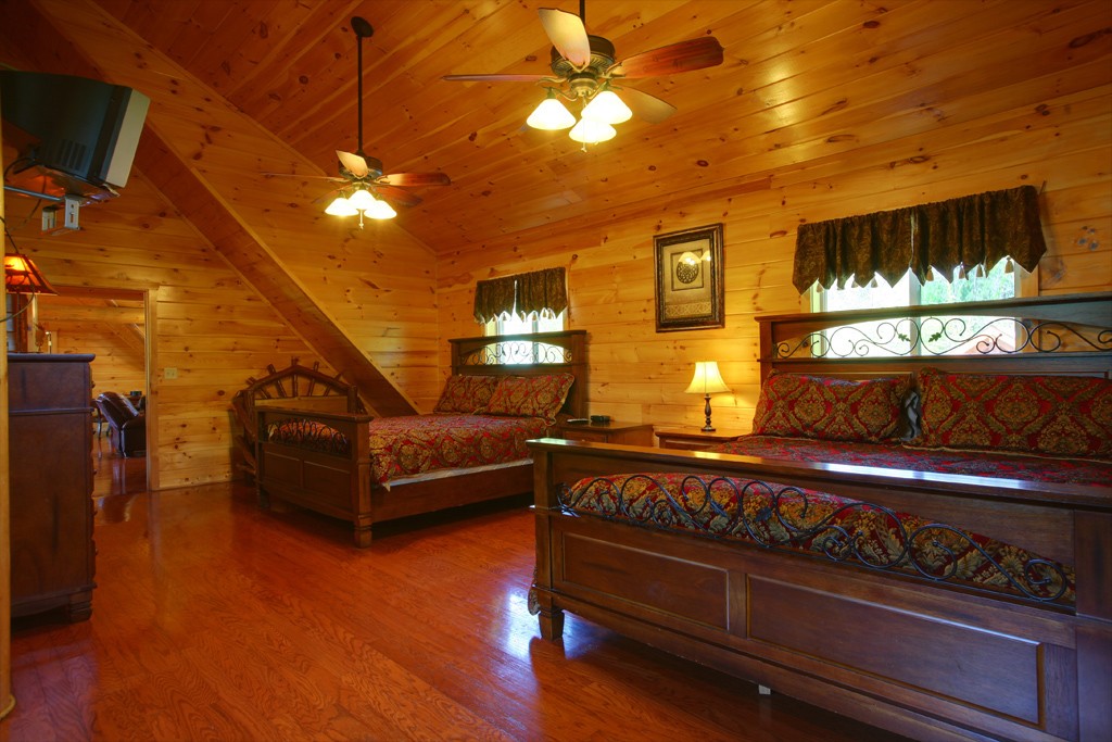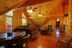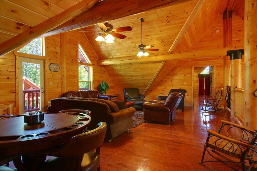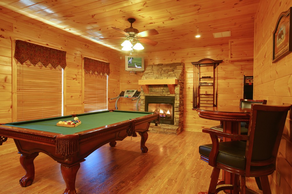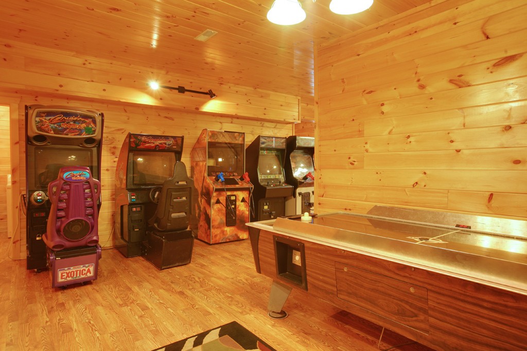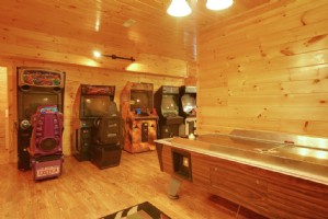 This is the perfect place for your next wedding, family reunion or corporate retreat.This lodge features a full commercial grade arcade for the children to escape too! A full loft with it's own private area with a view for adults to sit and play cards. Corporate retreats or family reunions are perfect for this lodge as well since you can present presentations or have a memory film for the families of the the bride.