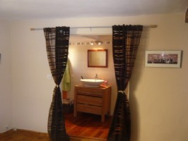 living and dining room, kitchen (5 hot cooking/gaz plate, professional gaz oven, dishwasher, microwave, fridge/freezer), laundry room (washing machine, dryer), master bedroom (36 sqmeters) with bathroom and dressing, separate toilets