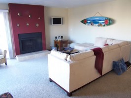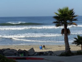 Oceanside CA beach condo vacation rental, 2 bedroom, 1 bath, directly across the street from fabulous surf and wide Southern California beaches, near to San Diego, San Clemente, and Orange County attractions, with golf, cycling, fishing, & surfing.