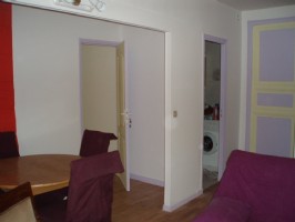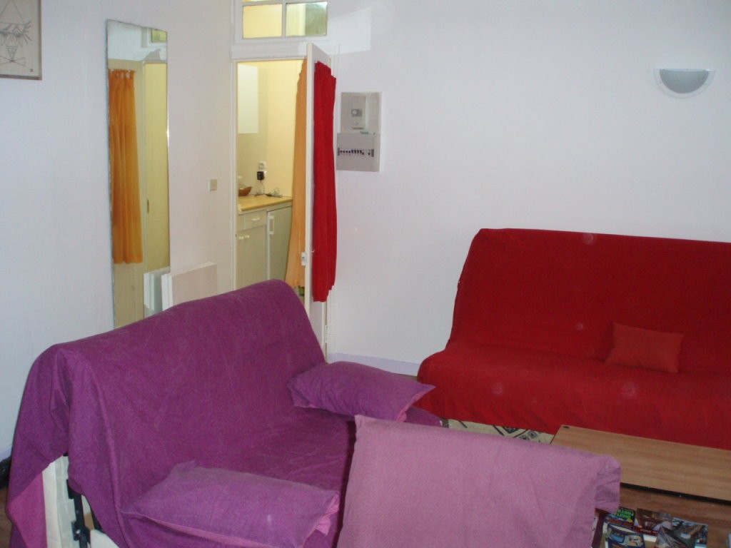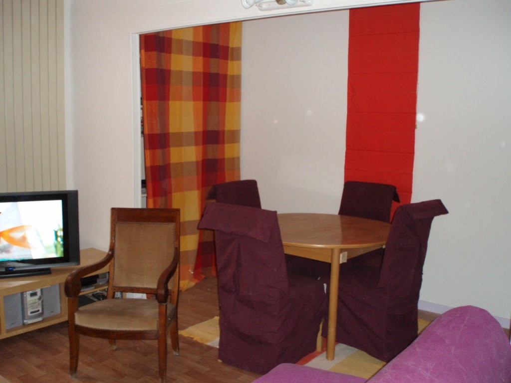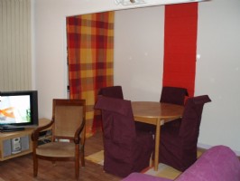mainroom with table, chairs, armchairs, sofa making double bed, tv, hifi, closet