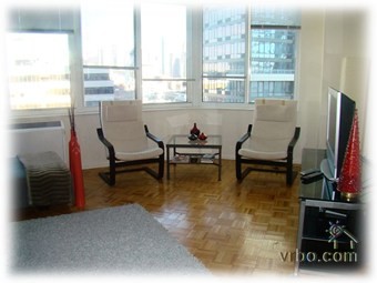 This home is a 900-unit state-of-the-art luxury 24-hour doorman/concierge elevator building conveniently located in Midtown Manhattan. The air-conditioned apartment has large one bedroom with a view of the