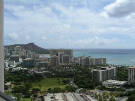 Fully furnished penthouse studio with stunning ocean and Diamond Head views. Newly renovated building located on Ala Moana Blvd., across from Hilton Hawaiian Village. FREE INTERNET!