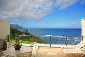 Puu Poa is located on a bluff overlooking the Pacific Ocean. It adjoins the five-star St Regis Hotel (summer ’09) at the northeast tip of Hanalei Bay. The complex overlooks Hideaway Beach, which is accessible by a path separating Puu Poa from the hotel property. (Hideaways is considered one of the two finest snorkeling beaches on the island.)
