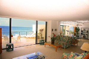 Puu Poa Unit 211. A 2,000 sq. ft. unit with tlie throughout, remodeled bath, granite kitchen, and Bali Hai views from the living room, dining room, atrium, master bedroom, and lanai. TV, stereo, WiFi, electric barbeque, and 180 degree ocean views.