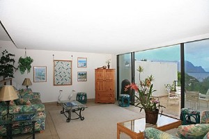 Please allow me one paragraph to describe why our home is one of the most desirable units at Puu Poa. Most important is location. Unit 211 is on the far right side of the complex and faces almost due west, thus having the best Bali Hai view. You can enjoy Bali Hai sunsets while dining, reclining in the living room, seated in the atrium, lying in the master bed, or of course, while relaxing on the lanai. (Each year two or three honeymoon couples are referred to our unit, and the primary reason is the view.) We are one of only fourteen owners to have an enclosed atrium and thus an additional 250 sq. ft. of living area. Our recent remodels include a fully appointed granite kitchen, newly designed master bath, and tile flooring throughout. Our unit is on the second floor which is the easiest to access. The first and fourth floors require a second set of stairs. As you read this description and those of other condos, please remember that the “postcard” Bali Hai view is available from the interior of only a few of the units and this greatly adds to the beauty and charm you will experience on your island vacation.