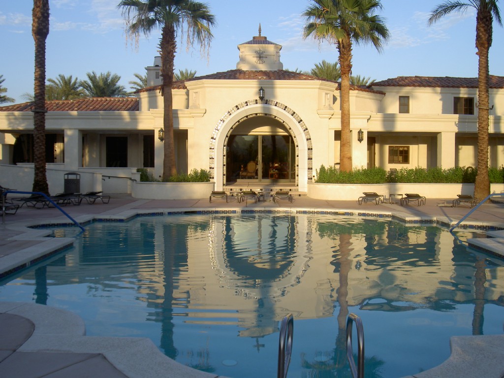 The Casa Amistad Clubhouse includes a fitness center, billiard room, game tables, full kitchen, wireless internet, fireplace and elegant furnishings. There are 2 large pools and spas, a 9 hole putting green, tennis and bocci ball courts, BBQ, outdoor fireplace and walking trail. This truly is the perfect place for a private getaway or golf retreat. This highly upgraded home is furnished with all the amenities of a fine resort-luxury bedding and linens, washer and dryer, fully equipped kitchen with granite counters, jetted Roman tub, plasma TV, DVD/CD player and all new quality furnishings. There are gorgeous Italian tile floors and high cathedral ceilings throughout. The lushly landscaped private yard has 2 patios, a beautiful lawn with palms, bougainvilleas, hibiscus and fruit trees. The master bedroom suite has a king size bed with pillow top mattress, large flat screen TV, walk in closet and patio. The master bathroom includes a jetted tub, dual vanities, separate shower and water closet. The second bedroom has a queen size bed with adjacent bathroom. Enjoy entertaining in the spacious great room with cozy fireplace, 42" plasma TV and comfortable furniture. A full size sleeper sofa, desk and fireplace complete the Den. The home is conveniently located just steps from the clubhouse and has a breathtaking view of the Santa Rosa Mountains. Please be our guests and pamper yourself at this outstanding desert retreat.