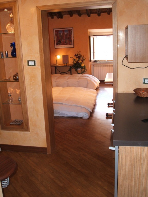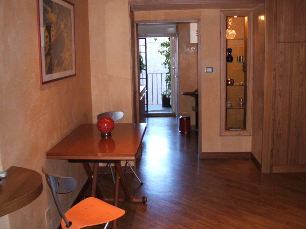 The recently renewed studio - works finished in may 2008 - is located on the third floor inside an ancient and historical building of XVII century. The flat can accommodate up to three persons and it's made up of a large room with a valuable wardrobe and dining area, a bathroom with shower, and a modern and fully equipped kitchen. It is provided with TV sat and cable, air conditioning, washing machine, automatic dishwasher, linen and bathrobes. The excellent designed furniture and the excellent location characterize this extraordinary apartment.