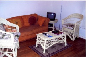 The living room includes a telephone/fax/answering machine, cable TV (CNN/BBC) and CD/radio/cassette player.
