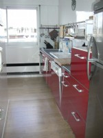 American "eat in" Kitchen: radiant heat cook top stove,oven, microwave, fridge/freezer, toaster, hot water kettle & 3 different coffee makers to satisfy what ever method you want. Pots, pans, dishes, ect. Alas, who comes to Paris to cook in their apartment with all the great places to eat here.