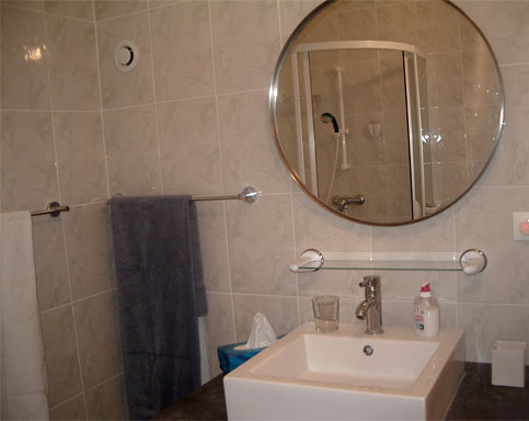 2 bathrooms, tiled floor to ceiling, each having its own toilet and shower. Perfect for two couples or parents with kids. All the hot water you want even if you are number 4 to take a shower.