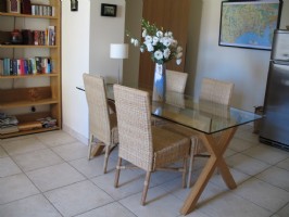 The lounge has a new comfortable leather sofa that converts into a double bed with a proper mattress. A large glass table and 4 chairs are in the dining area. Cable tv, WIFI internet, phone with free calls to Europe, US and Australia. A stereo and DVD are provided for your entertainment. Our paper back library, CD and DVD collections are growing and available for your use.