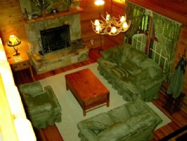 This vacation destination is exactly what you would imagine a peaceful retreat in the mountains to be. Our pristine log cabin is beautifully furnished with 3 bedrooms, 2 full bathrooms and loft - sleeps 8 comfortably on 2 finished levels. From the stone wood-burning fireplace in the 2-story great room, open dining room, covered front porch, 2 rear porches (one is screened-in) overlooking a wooded grove, washer/dryer, and modern kitchen you will surely enjoy this home-away-from-the hustle and bustle! Located in the 4-season Massanutten Resort, you can walk 1 block to a park with fishing, playgrounds, picnic shelters & arboretum. The ski slopes, golf courses, horseback riding, hiking, convenience markets, restaurants and more are also right there. We’ve included everything from linens & towels to games, cable TV & high-speed wireless Internet and firewood to make your stay in this beautiful Shenandoah resort easy and comfortable. This house is special no smoking or pets.
