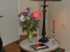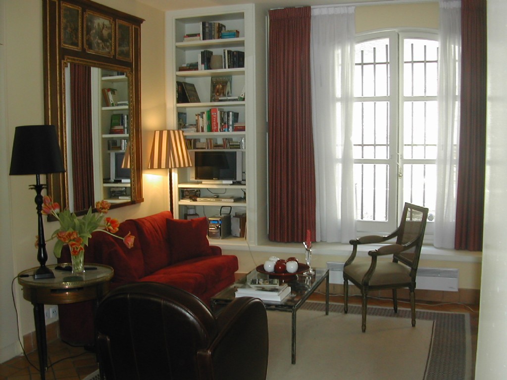 The living room is spacious and is furnished with an antique country French cherry wood dinning table from the Poitou region, a queen size sofa bed and ample seating for guests.