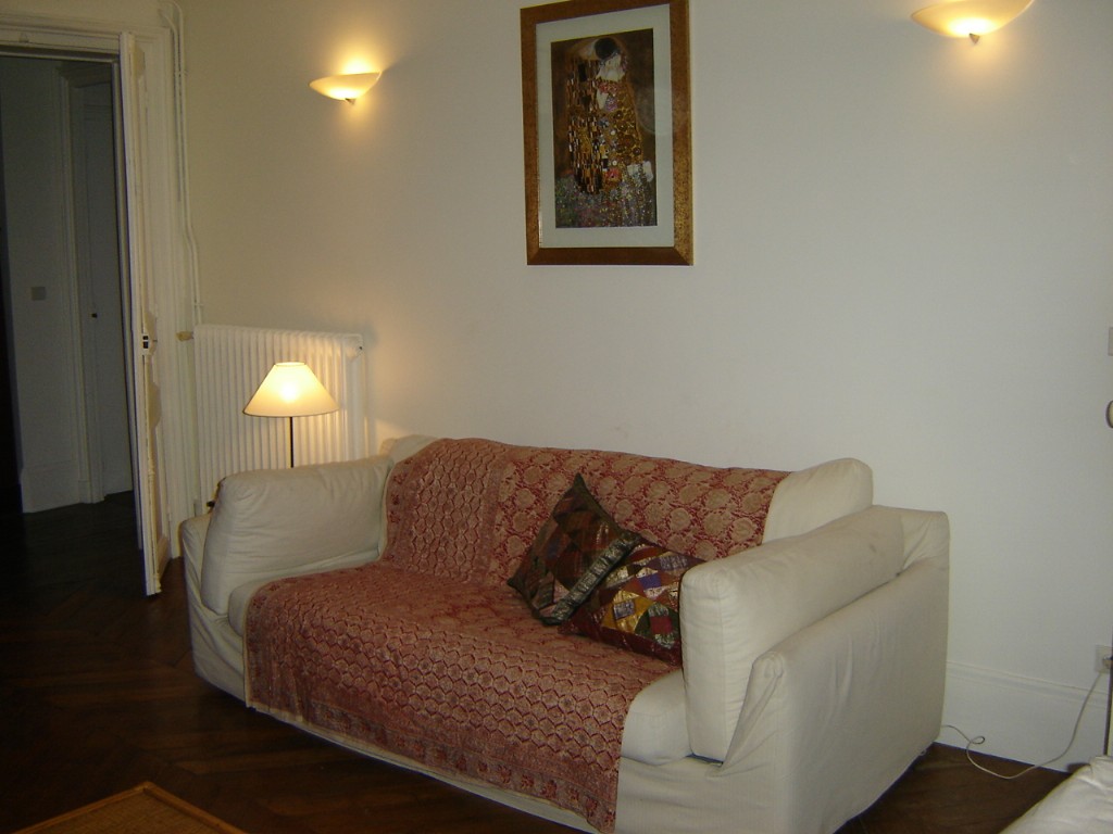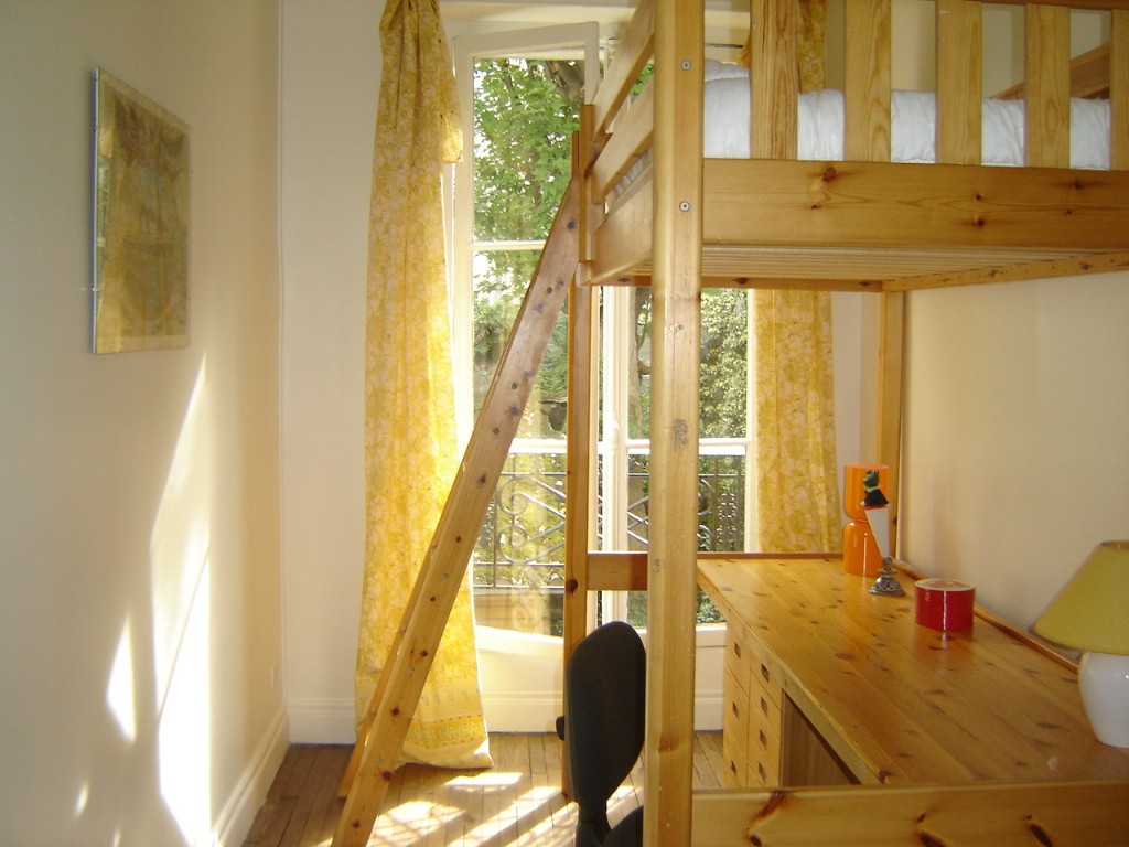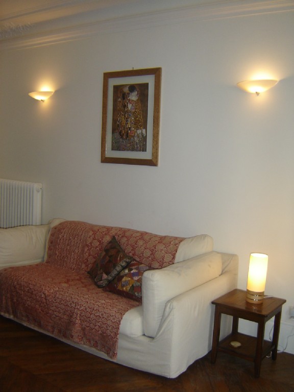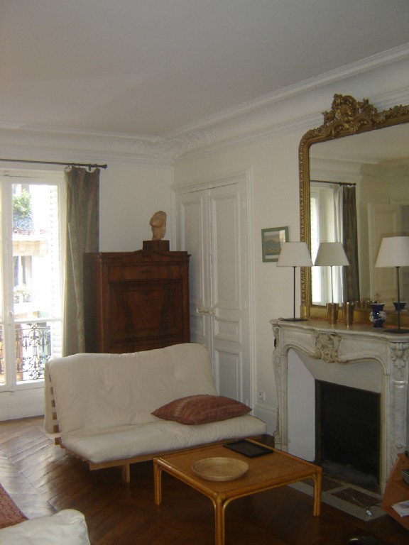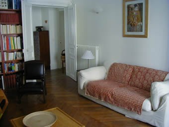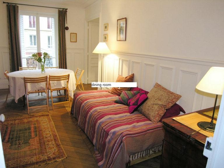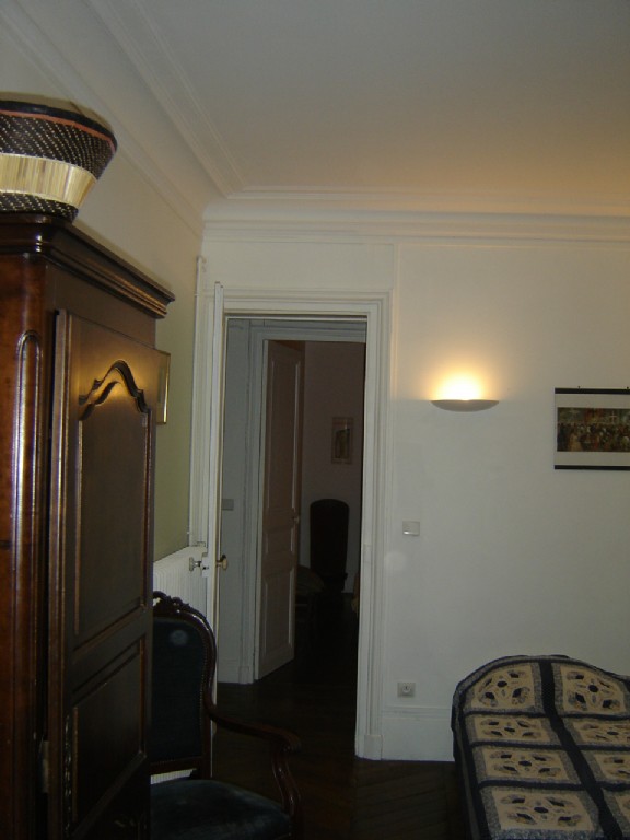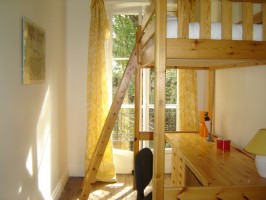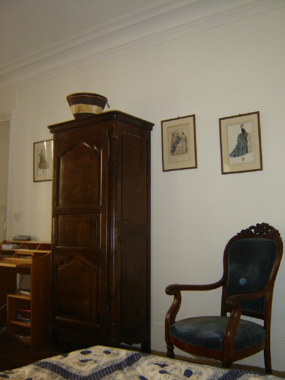 100m2, 1st floor with lift, 19th century building (fireplaces and huge mirrors in living room and bedrooms, Prussian oven in the dining room, hardwood floor), one side of the apartment overlooks a quiet courtyard, with trees. 2 bedrooms with queen size beds (can be separated in 2 single beds), 1 bedroom with single mezzanine bed, dining room with an extra bed, living room, 1 bathroom (with tub), 1 shower room, seperate WC. A lot of towels and bedlinen are provided (and duvets, pillows etc..). The heating works very well (individual heating gaz boiler).