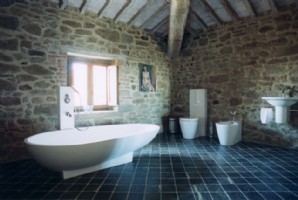 Ake original brickwork and exposed beams, arches and hand-made terracotta floor tiles for authenticity. Add inventive convieniences such as heated bathroom floors, automatic outdoor lighting and tv room. Throw in a stainless Boffi kitchen, three Phillippe Starck-equipped bathrooms and master-bedrooms with fourposter beds. Top with a selection of Scandinavian and Italian design classic and a spread of genuine khelim rugs and you might wish that your stay were forever.