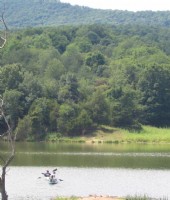 Eagle's Haven is located 12 miles south of Petersburg, WV, 12 miles north of Franklin, WV and 25 miles from Seneca Rocks/Dolly Sods Wilderness Area. The ground level has one bedroom, full bathroom, laundry room and home theater with a 60" satellite tv. The middle level has two bedrooms (w/satellite tv), full bath with jacuzzi tub, kitchen (fully equipped for the gourmet chef), dining and living room with a gas fireplace and satellite tv. The top level has one bedroom, full bath and family room with four twin beds (one bunk bed), and entertainment center (Playstation, Nintendo, games, dvd/vcr player, books, movies, etc. Our home is tastefully decorated with hardwood and ceramic floors throughout and fully furnished. Large wraparound deck with covered porch area, has lovely wooden chairs and rockers from which to view the mountains and abundant wildlife. An outside hot tub (6 people) is located on one end of the deck and gated for your privacy. There are two ponds located on the property each with a deck and are stocked with a variety of native fish. Sout Mill Lake which is adjacent to our property is a 50 acre lake that is stocked with native fish by the state of WV. Fishing and canoeing are an enjoyable activity at the lake. The South Branch of the Potomac River flows through Smoke Hole Canyon which is a 20 minute drive from Eagle's Haven.
